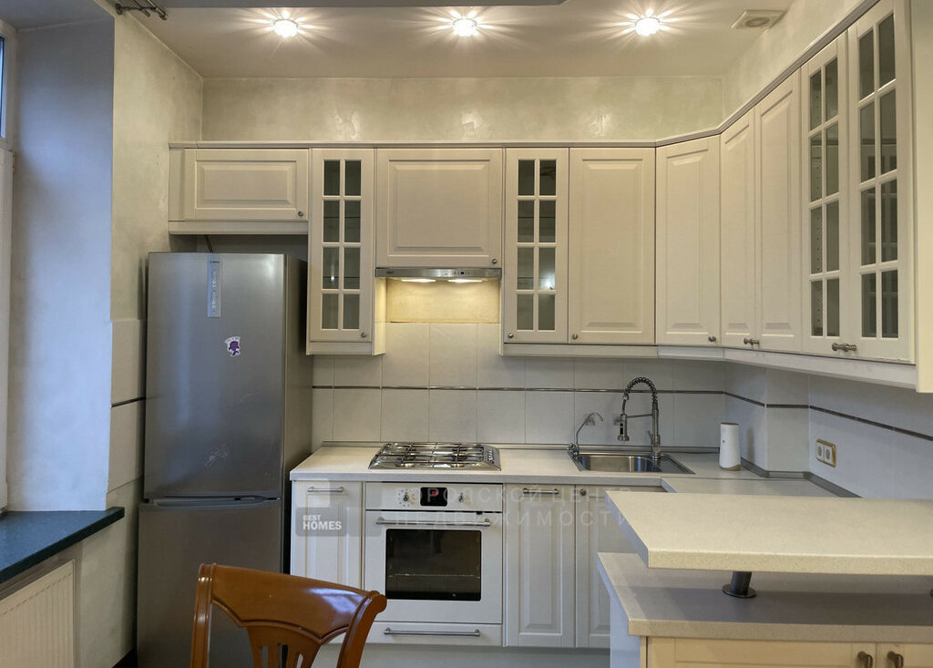 Квартира со всей техникой и мебелью: встроенная техника на кухне - холодильник, плита, духовой шкаф, вытяжка, посудомоечная машина, а также стиральная машинка.