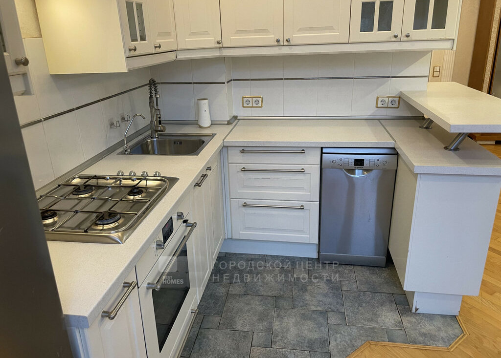 Квартира со всей техникой и мебелью: встроенная техника на кухне - холодильник, плита, духовой шкаф, вытяжка, посудомоечная машина, а также стиральная машинка.