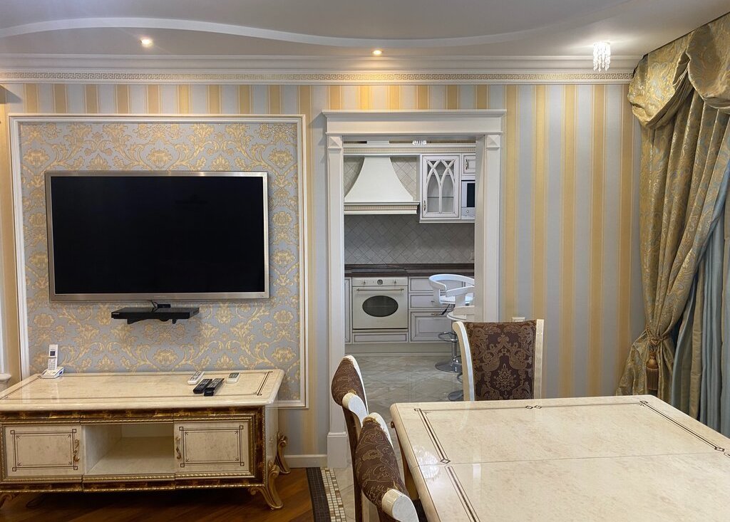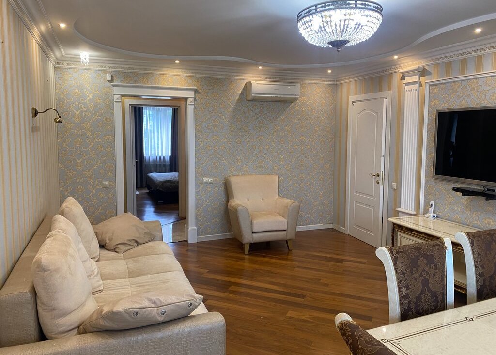 Стильная уютная и светлая квартира с качественным евроремонтом! Это объединенная двухкомнатная и однокомнатная квартиры. Укомплектована всем необходимым для яркого и комфортного проживания, полностью меблирована и оснащены необходимой бытовой техникой. Изолированные две комнаты. Большая кухня-гостинная. Два санузла совмещенный с ванной джакузи и раздельный санузел. Большая гардеробная. Кондиционеры. Три лоджии застекленные. В маленькую комнату спальное место будет куплено по запросу арендаторов.