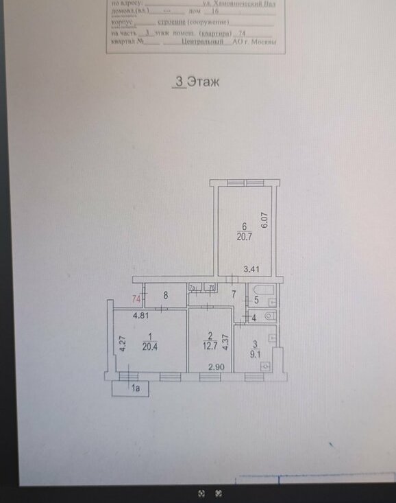 3-комнатная квартира: Москва, улица Хамовнический Вал, 16 (81.5 м²)