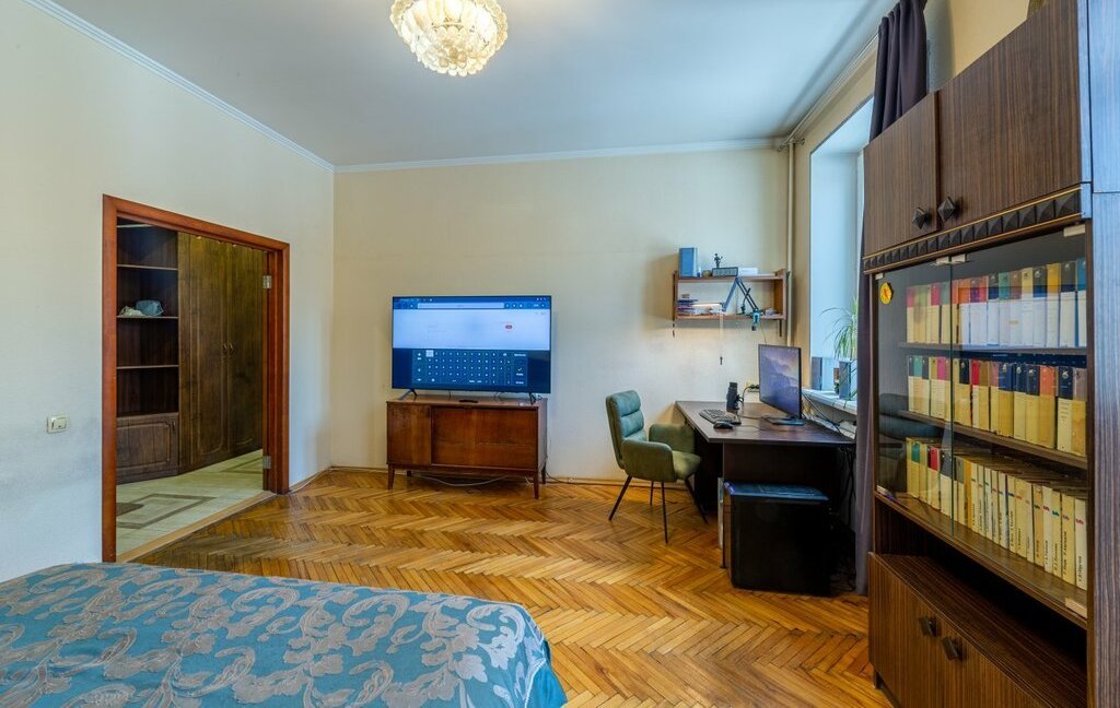 Квартира с тремя изолированными комнатами. Высота потолков 3 метра. В доме заменены все трубы, в квартире новая проводка. Внутренний двор с тремя шлагбаумами. Во дворе детские и спортивные площадки. Рядом школа и два детских сада.