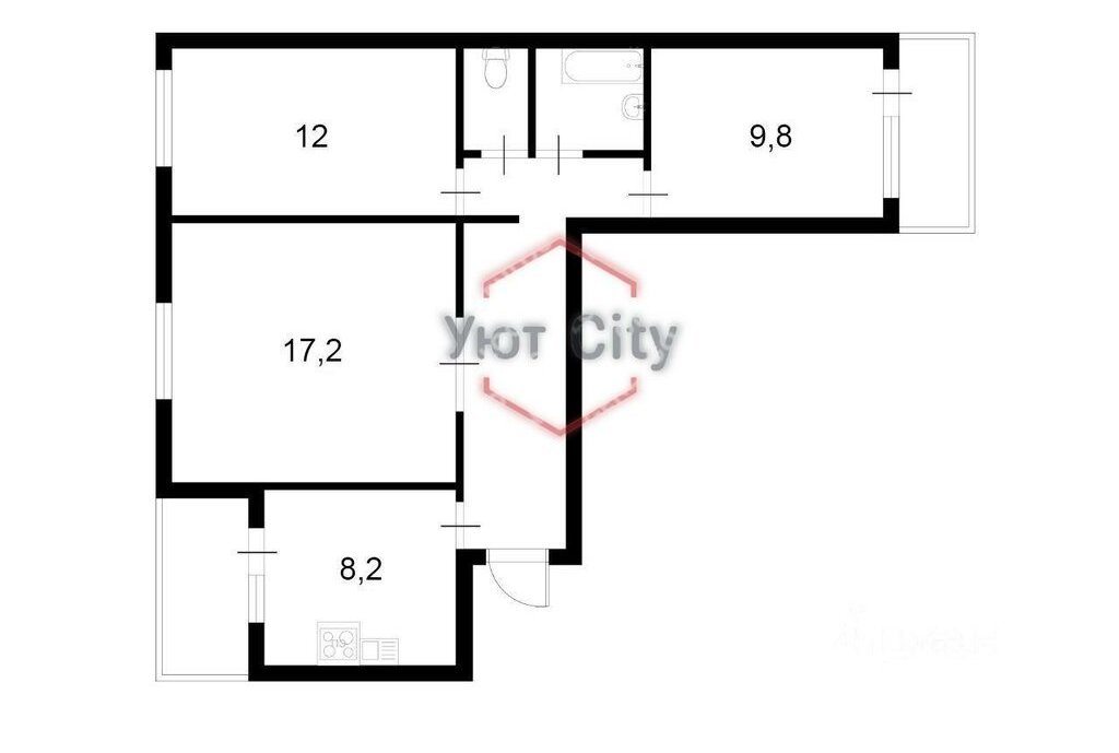 3-комнатная квартира: Москва, улица Корнейчука, 51Б (64 м²)