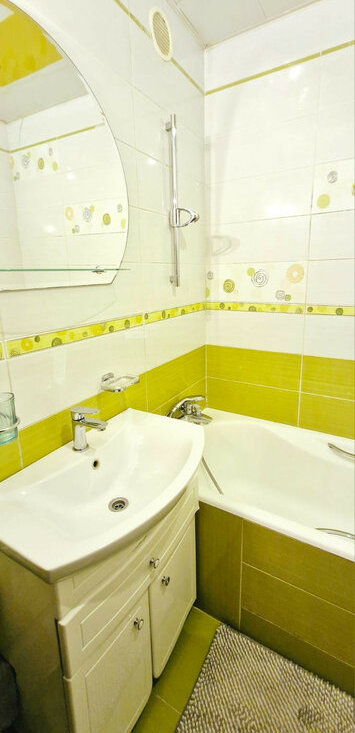 Раздельный санузел.Большой коридор.Выделено специальное место под стиральную машину.Предусмотрено много мест для хранения вещей: шкафы в каждой комнате и встроенные шкафы-купе в коридоре.В одной из спален присутствует большой диван, который раскладывается.В другой спальне - двуспальная кровать.В гостиной также большой, мягчайший диван - отличное место для отдыха.