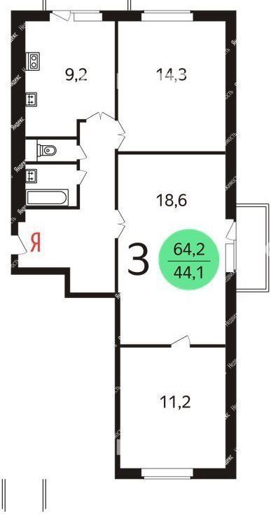 3-комнатная квартира: Москва, улица Красных Зорь, 55 (64 м²)