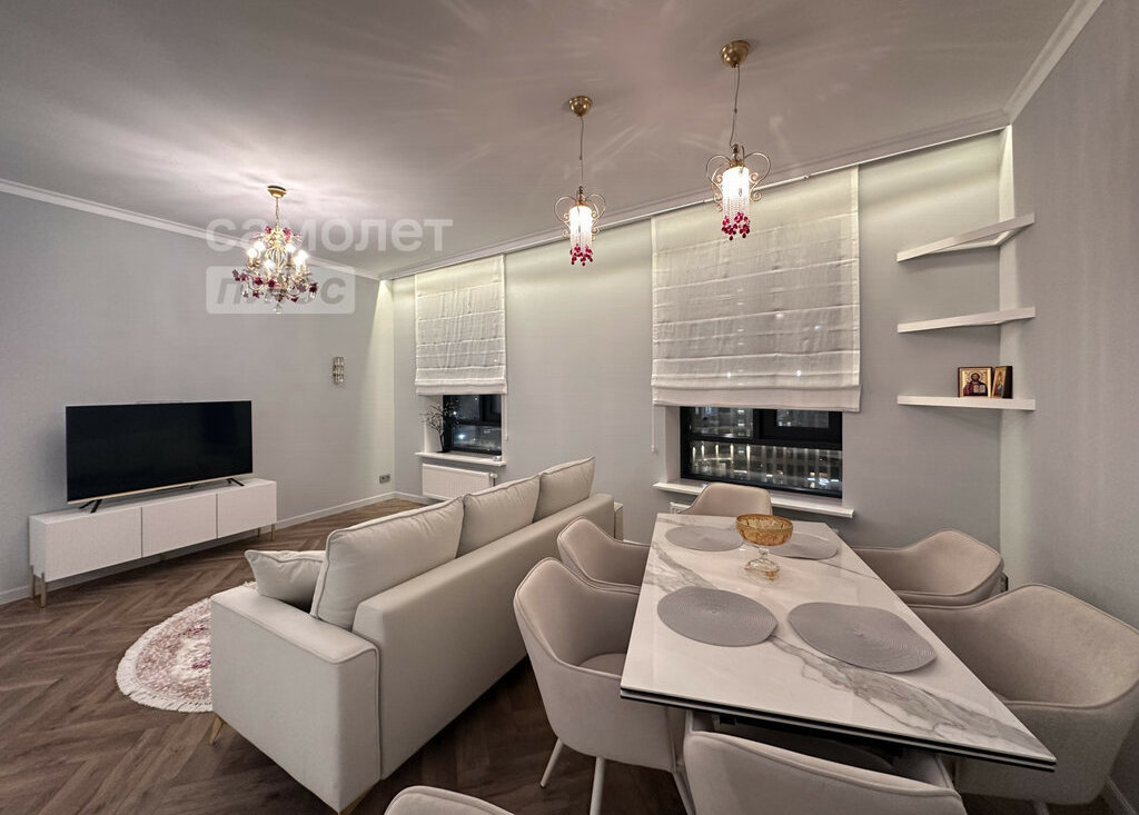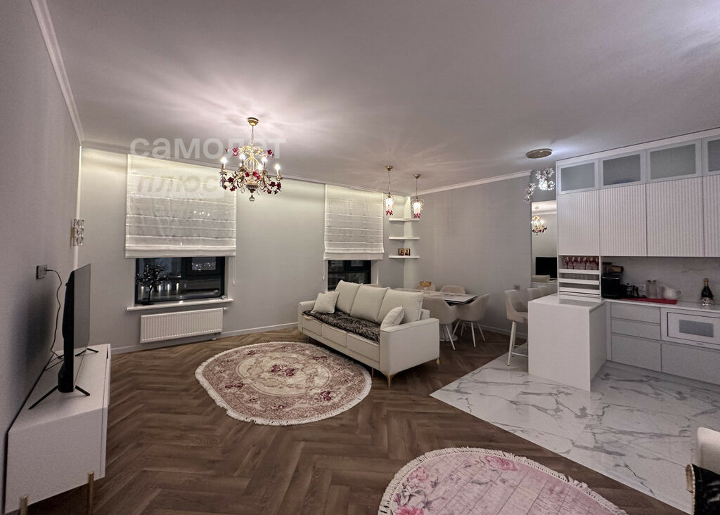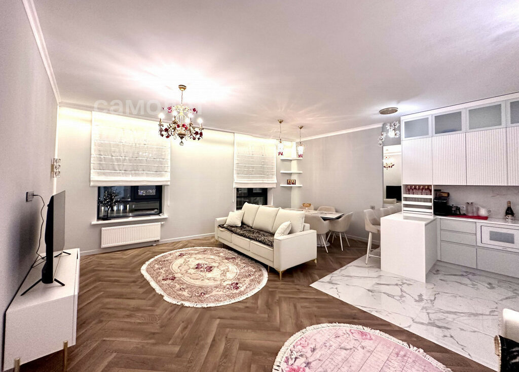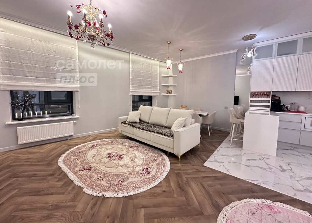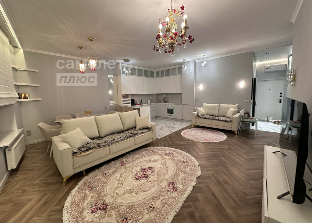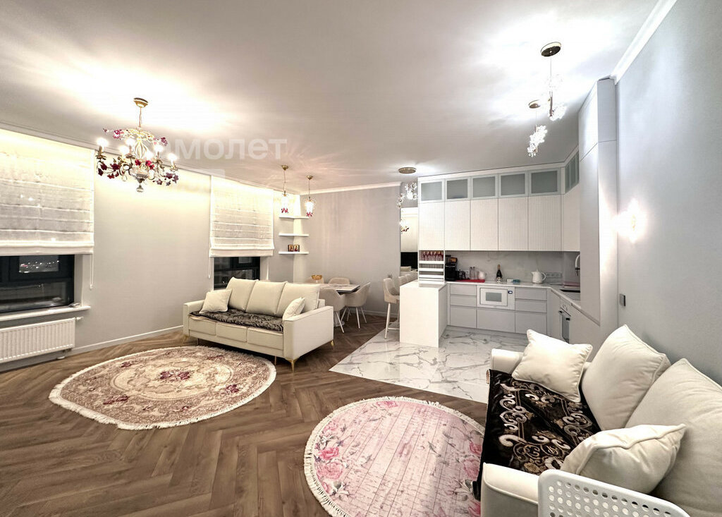 Сдается замечательная квартира с дизайнерским ремонтом в новом жилом комплексе бизнес класса "Крылья". Евротрешка. Квартира полностью укомплектована мебелью и бытовой техникой. Встроенная кухня с бытовой техникой: холодильник, варочная поверхность, духовой шкаф, микроволновка, посудомоечная машина. Стиральная машина, гладильная доска, пылесос, утюг, комплект посуды, халаты, тапочки. Просторная уютная гостиная зона, с большим столом. Две отдельные спальни. Два санузла. Много мест для хранения. Гардеробная в прихожей и в спальне.