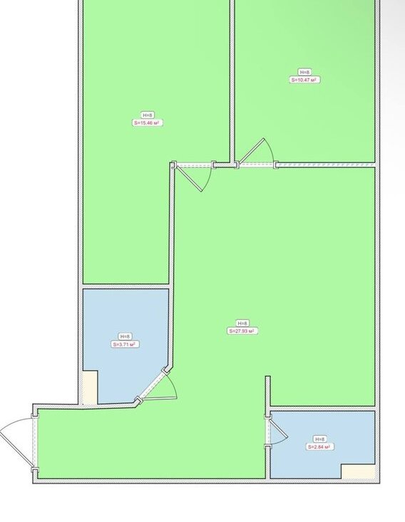 - 2 изолированные спальни (15,46 и 10,47 кв.м.).