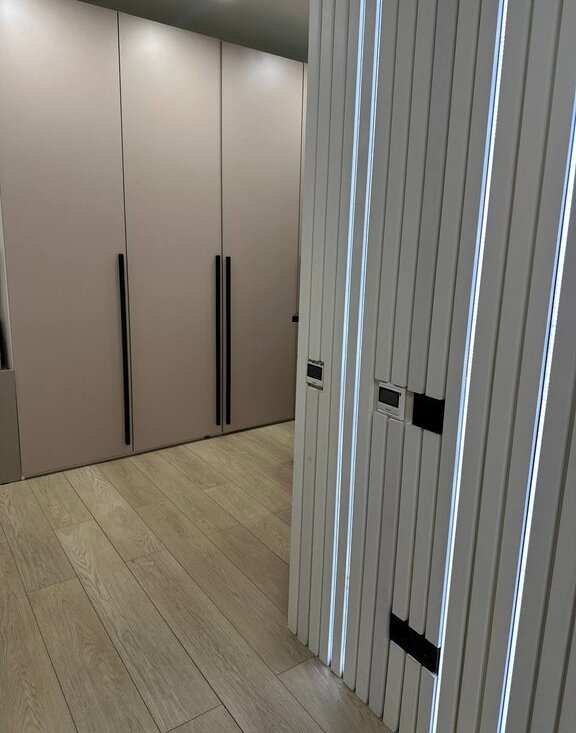 В коридоре большой шкаф для хранения вещей.