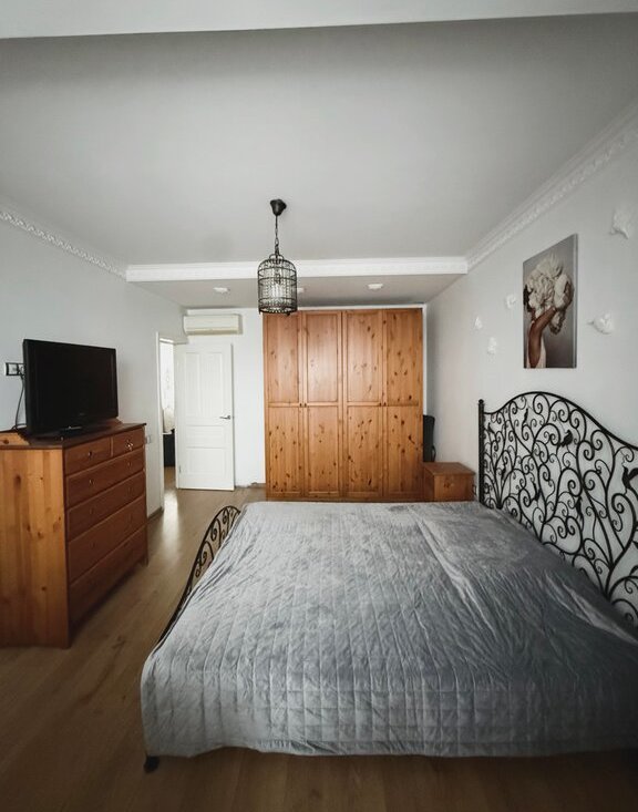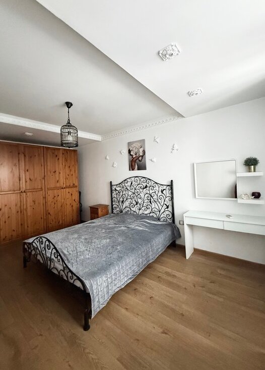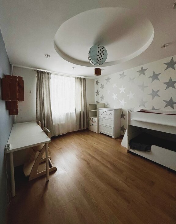 Двуспальная кровать, Двухэтажная кровать детская, Диван раскладной, Шкаф - 3, Комод - 3, Стол рабочий - 2, Стул рабочий - 3, Тумба прикроватная, Туалетный столик, Тумба под телевизор, Шкаф книжный, Кухонный гарнитур, Стол обеденный, Стулья - 4, Прихожая, Телевизор - 3, Холодильник, Морозильная камера, Микроволновка, Фильтр питьевой воды, Чайник, Варочная панель электрическая, Духовой шкаф электрический, Вытяжка, Стиральная машина, Утюг, Кондиционер - 2, Роутер. Из окон открывается вид как на улицу, так и на двор. Дом поддерживается в хорошем состоянии и имеет наземную парковку. Район привлекателен развитой инфраструктурой: поблизости находятся школы, детские сады, клиники и магазины, благоустроенная набережная и парк 850 летия Москвы в 3 минутах пешком от дома. Это делает проживание здесь удобным для семей с детьми. До станции метро Марьино можно дойти пешком всего за 10 минут. Квартира готова к заселению, без дополнительных обременений.