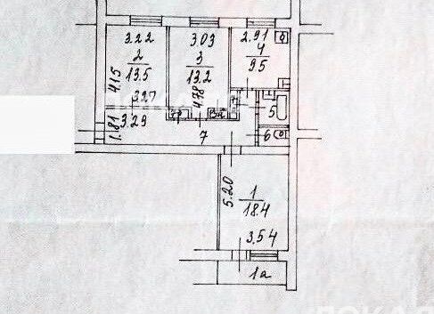 большими изолированными комнатами 18,4/ 13,5/ 13,2 кв.м.