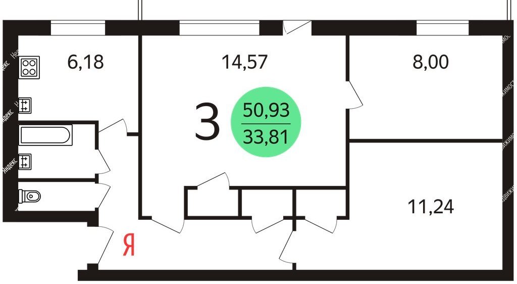 3-комнатная квартира: Москва, улица Металлургов, 20к2 (50.93 м²)