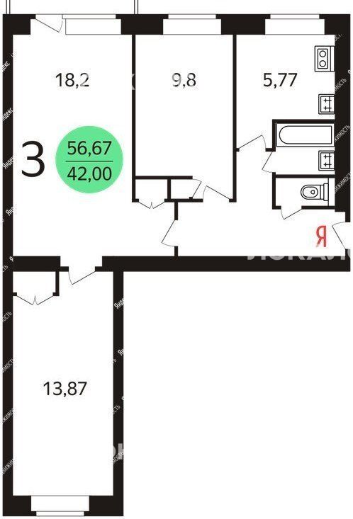 3-комнатная квартира: Москва, бульвар Маршала Рокоссовского, 30 (56 м²)