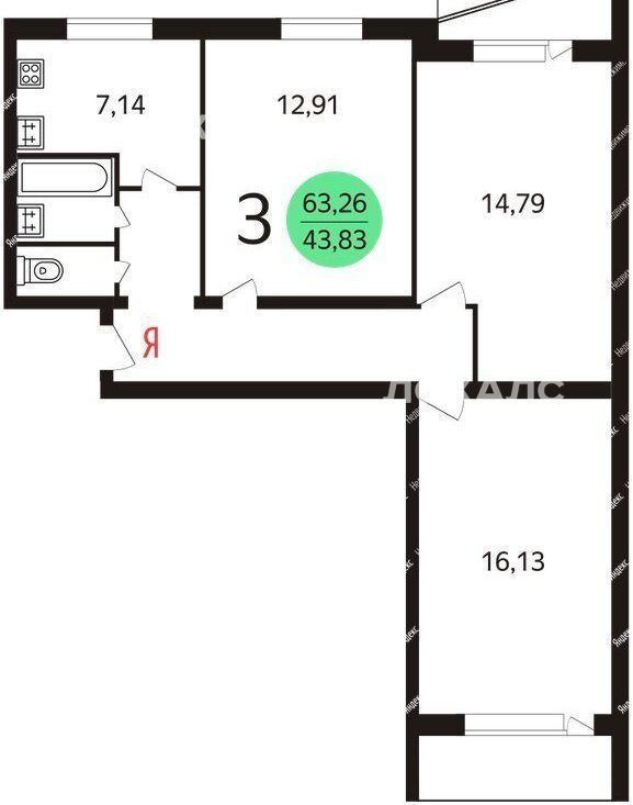 3-комнатная квартира: Москва, улица Миклухо-Маклая, 51к1 (63.26 м²)