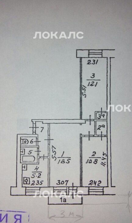 3-комнатная квартира: Москва, улица Молодцова, 27к1 (56 м²)