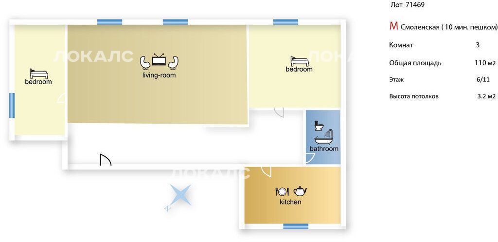 3-комнатная квартира: Москва, улица Новый Арбат, 30/9 (110 м²)