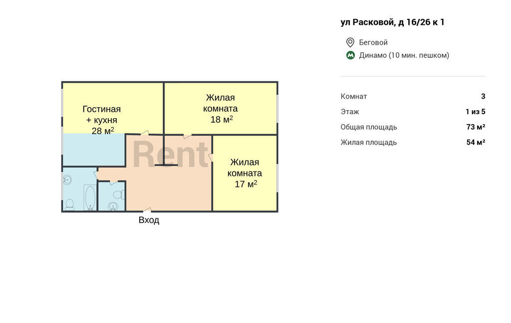 3-комнатная квартира: Москва, улица Расковой, 16/26к1 (73 м²)