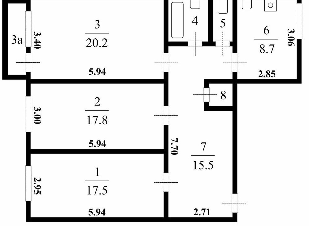 Общая площадь квартиры составляет 88,6 м2, включая огромный коридор в 15,5 м2.