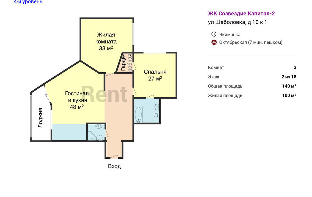 3-комнатная квартира: Москва, улица Шаболовка, 10к1 (140 м²)