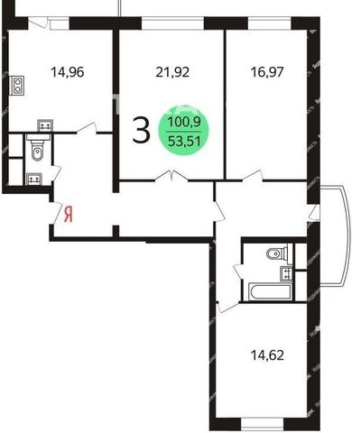 3-комнатная квартира: Москва, улица Юных Ленинцев, 51 (75.3 м²)