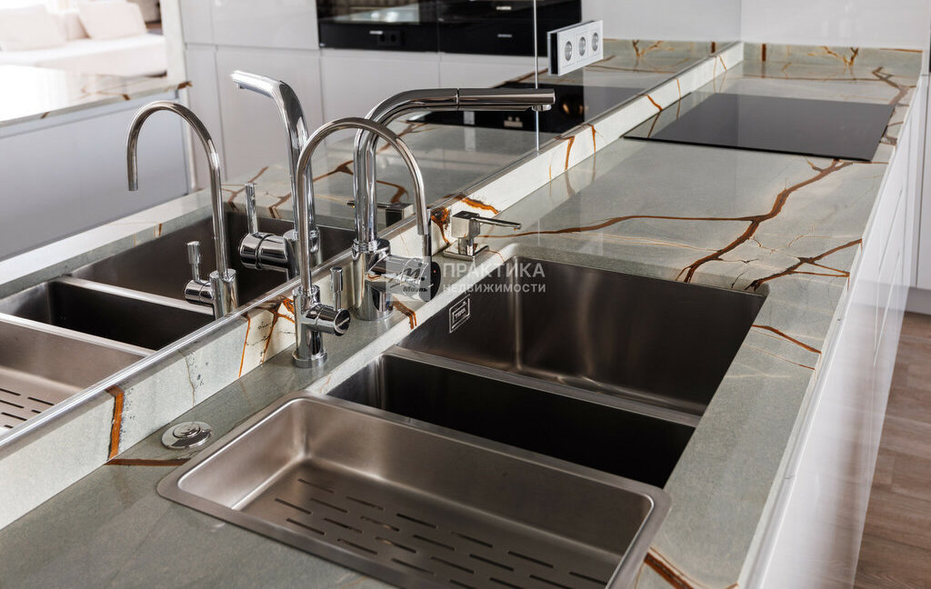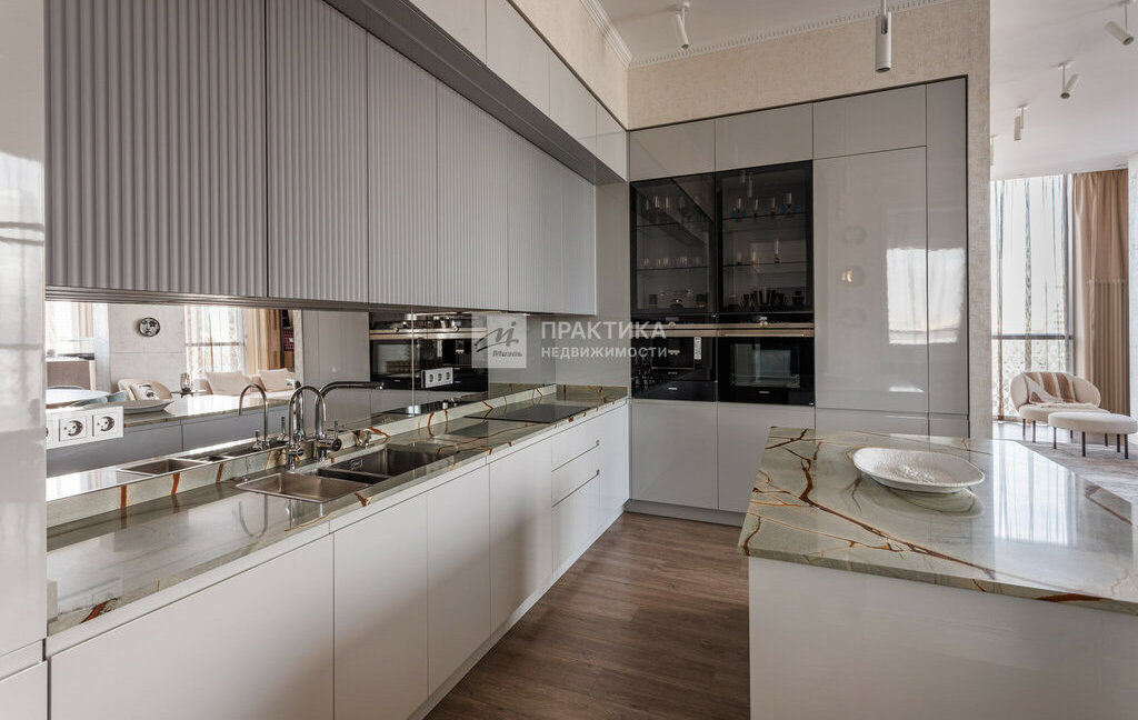 Встроенная кухня сделана под заказ. Имеется вся необходимая техника( посудомойка, духовой шкаф, микроволновая печь, варочная панель, двухкамерный холодильник).