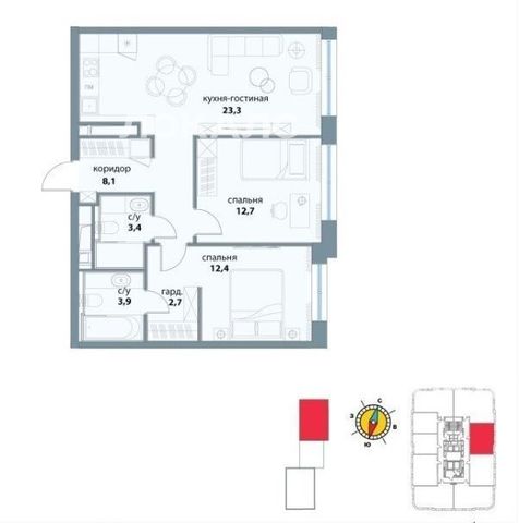 3-комнатная квартира: Москва, улица Василия Ланового, 7с1 (66 м²)