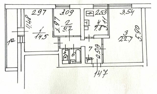 3-комнатная квартира: Москва, улица Зои и Александра Космодемьянских, 18к2 (64.5 м²)