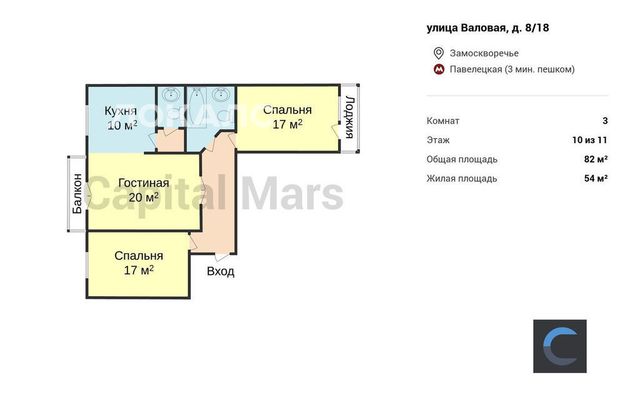 3-комнатная квартира: Москва, Валовая улица, 8/18 (82 м²)