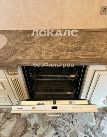 Техника: встроенный холодильник и морозильная камера, стиральная машина, кондиционер, плита, посудомоечная машина, вытяжка, телевизор.