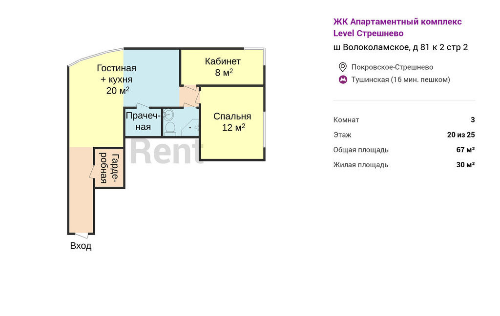 3-комнатная квартира: Москва, Волоколамское шоссе, 81/2с2 (67 м²)