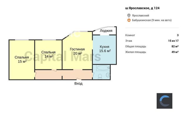 3-комнатная квартира: Москва, Ярославское шоссе, 124 (82 м²)