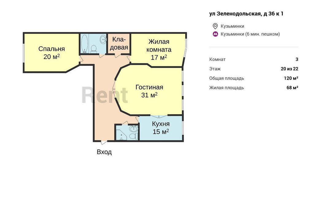 3-комнатная квартира: Москва, Зеленодольская улица, 36к1 (120 м²)