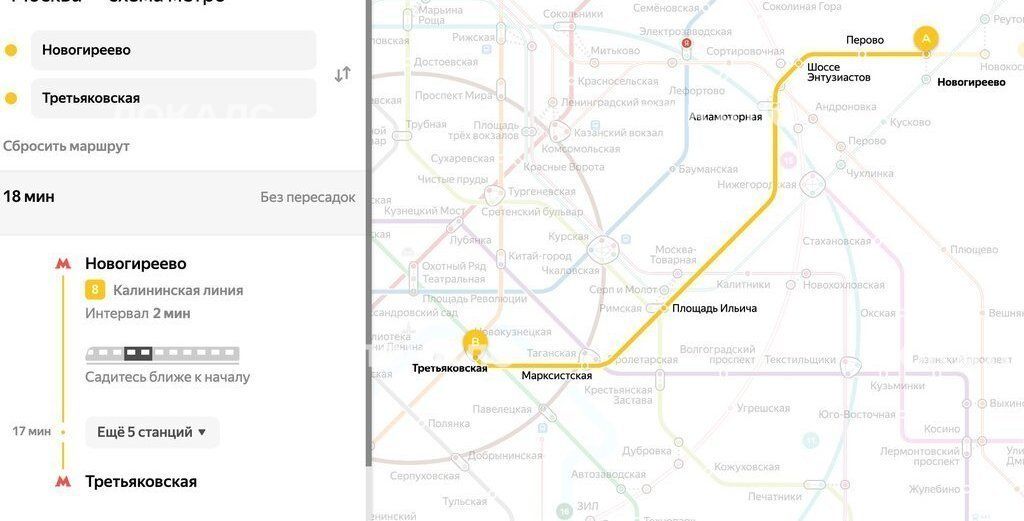 🚇 Метро Новогиреево — 1 минута пешком. До центра (м. Третьяковская) — 18 минут без пересадок.