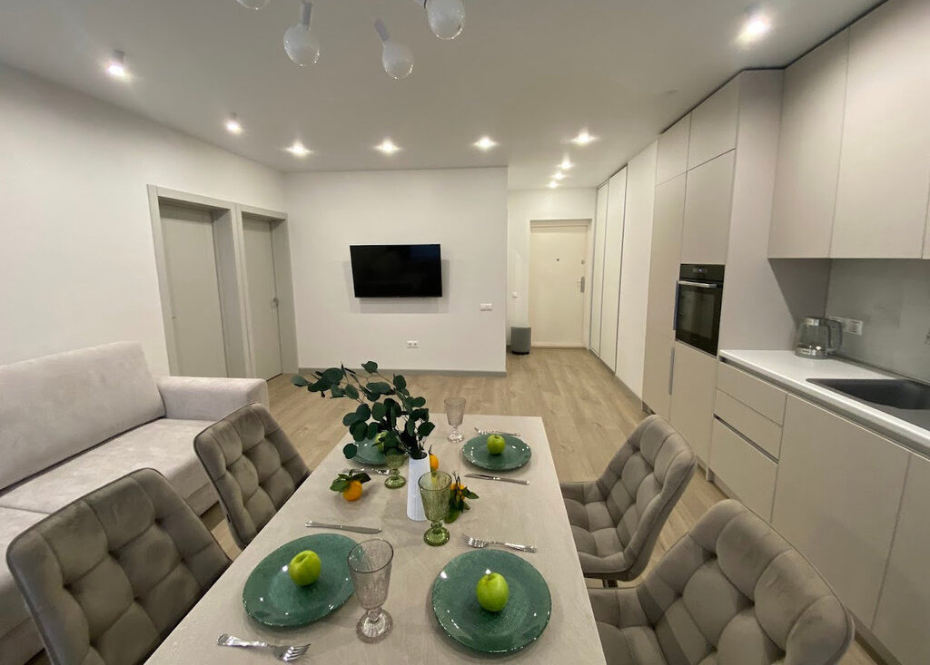 Предлагается уютная евро-трешка с панорамным видом из окон. Сделан евро ремонт. В квартире никто не проживал. Дом расположен в ЖК Garden Park Эдальго с огороженной территорией с детскими и спортивными площадками. В квартире есть все необходимое для комфортного проживания : кухонный гарнитур с встроенным холодильником, посудомоечной и стиральной машиной, духовым шкафом с СВЧ и электрической варочной панелью. Кухонный стол со стульями. диван, пятидверный шкаф, шкаф-купе в прихожей двуспальная кровать с тумбами. Детскую комнату по желанию нанимателя можно укомплектовать необходимой мебелью за счет наймодателя.