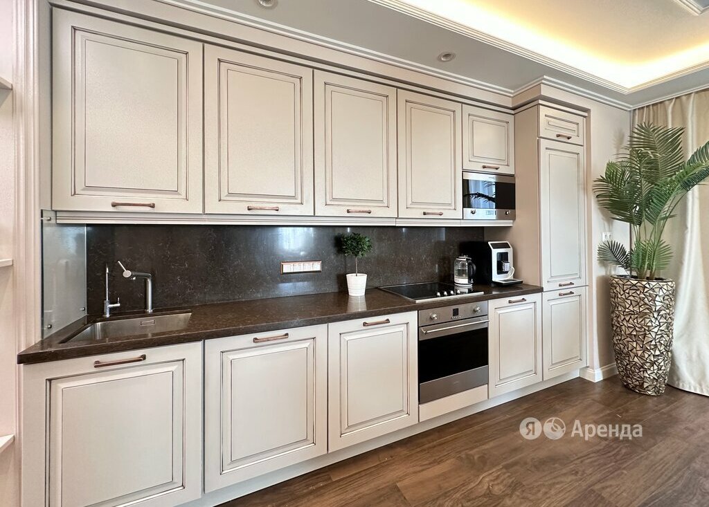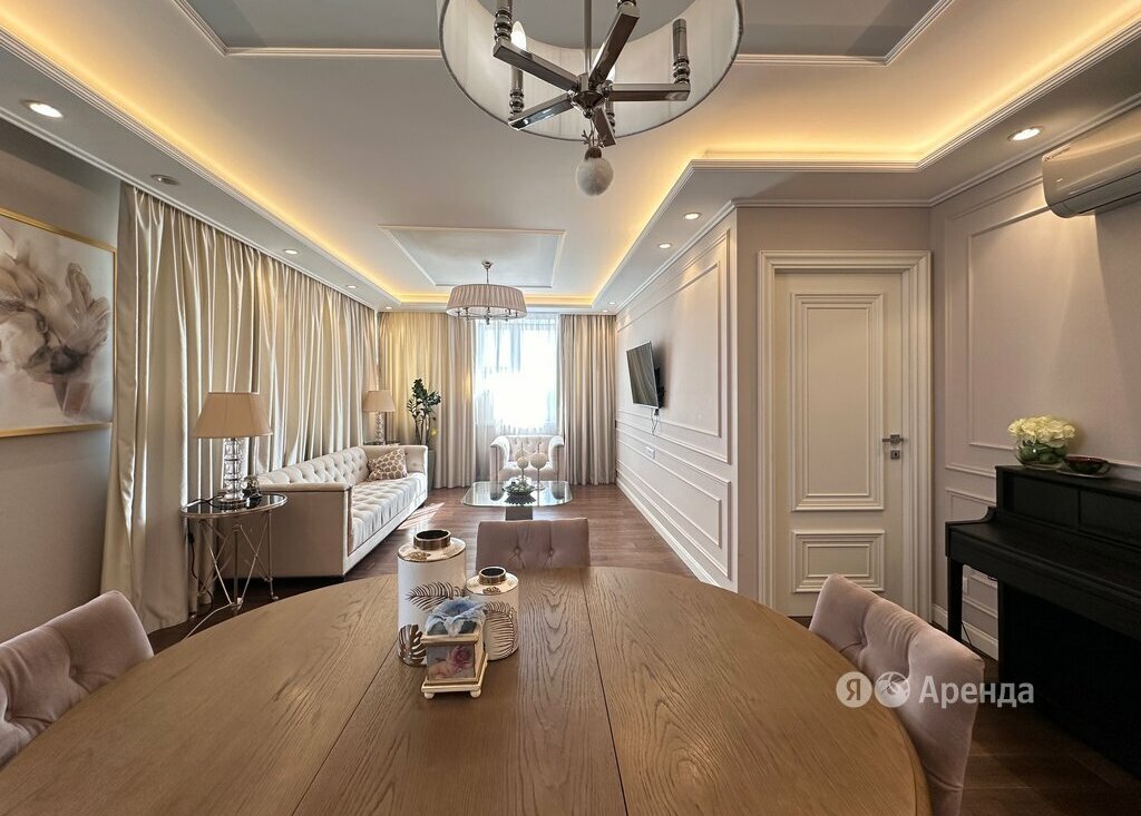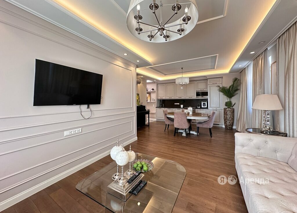Сдаётся 3-комнатная квартира площадью 85 кв.м. с дизайнерским ремонтом на 15 этаже в 25-этажном доме на срок от 11 месяцев. Из техники есть: