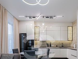 В квартире представлены лучшие бренды светильников и люстр (Baga, Visioner, Ruggiano) в большом количестве, что позволяет использовать индивидуально, под любое настроение, освещение в квартире. Кухня Minotti со встроенной премиальной техникой от брендов Kuppersbusch и Miele. Система климат-контроля Daikin по всей квартире. Домашний кинотеатр с 3D-звуком по кругу.