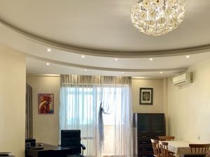 Квартира состоит из кухни- гостинной- столовой 50 метров, 2-х спален 20 метров и 18 метров, гардеробной 7 метров и 2-х санузлов (первый с ванной, второй с душевой кабиной). Также есть балкон с выходом во двор. В стоимость аренды входит одно машиноместо на 1м уровне подземного паркинга.