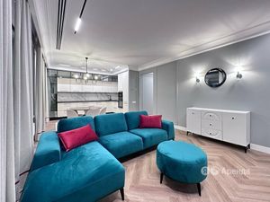 Квартира с дизайнерским ремонтом в ЖК бизнес-класса. Интегрирован умный дом с голосовым управлением. Квартира полностью укомплектована для жилья, за исключением одной комнаты. Данную комнату укомплектуем по предпочтениям заказчика после подписания договора. Потолки 3м, два санузла. В жк находится торговый центр с большим количеством магазинов и кафе. Также, на территории ЖК находится детская площадка. Подземный паркинг, в т.ч. гостевой.