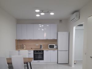 Без комиссии для арендатора. Предлагается уютная трехкомнатная квартира студийной планировки. Гостиная переходит в ультрасовременную кухню с полным набором техники, остальные комнаты изолированы. Установлен кондиционер и водонагреватель. Есть кладовая. В коридоре организован большой шкаф-купе для поддержания порядка в квартире.