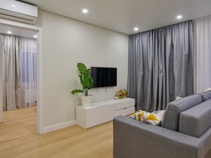 Предлагается в аренду элегантная 3-комнатная квартира в жилом комплексе Доминанта, расположенном по адресу: ул. Щукинская д. 2. В квартире выполнен качественный ремонт в современном стиле. Студийная планировка квартира совместила в единое пространство полностью меблированную гостиную с кухней, оборудованной встроенным кухонным гарнитуром со всей бытовой техникой. Две изолированный комнаты: спальня со своим санузлом и кабинет. В наличии гардеробная комната. Установлены кондиционеры, интернет. Жилой комплекс находится на огороженной охраняемой территории с подземным паркингом, где за квартирой закреплено одно парковочное место. Развитая инфраструктура комплекса к Вашим услугам.