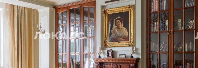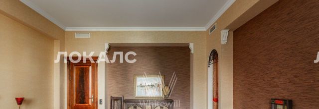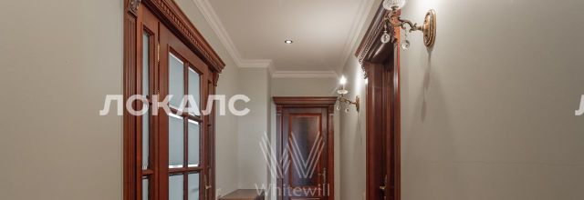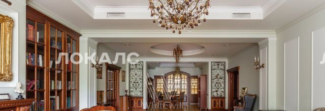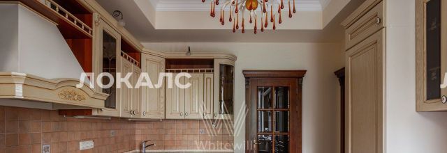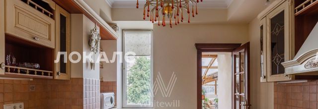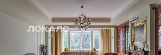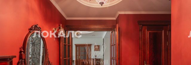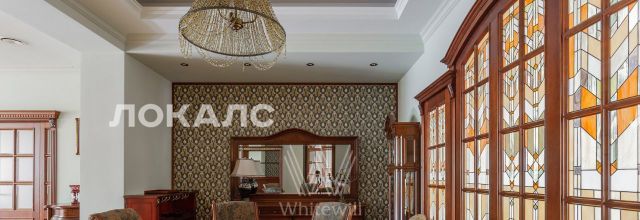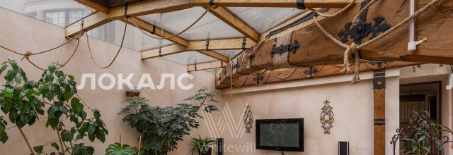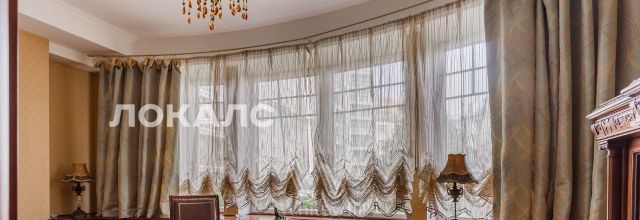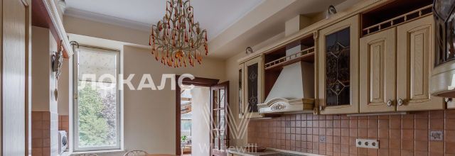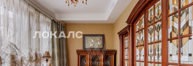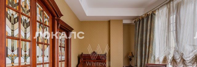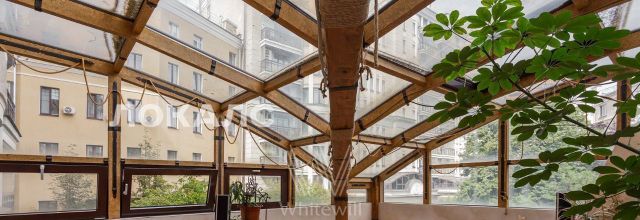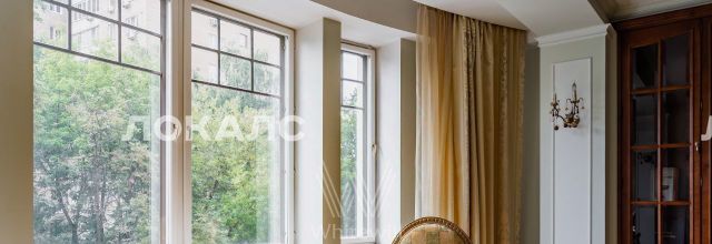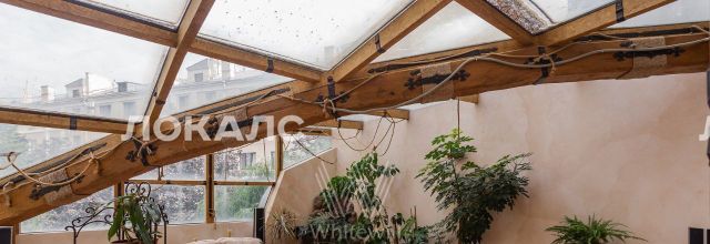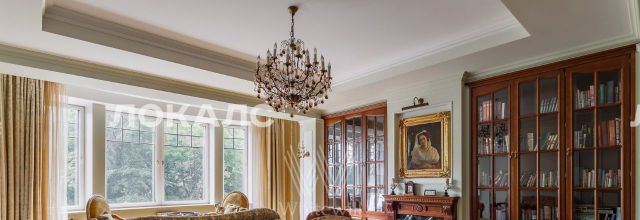 ID 86 Квартира площадью 241 м² с зимним садом в комплексе "Венский дом" на 2 этаже. Выполнен ремонт в классическом стиле, в отделке использовано натуральное дерево и камень. На полу выложен светлый паркет с плетёным узором. Стены в спокойных тонах украшены картинами и светильниками в виде подсвечников. Квартира полностью меблирована, почти вся мебель из тёмного дерева. В гостиной с витражными дверьми спланирована зона отдыха у камина, столовая зона с круглым столом на 6 персон. Оборудована кухня цвета слоновой кости с бытовой техникой. На застеклённой террасе обустроен зимний сад с мягкими диванами в леопардовой обивке.