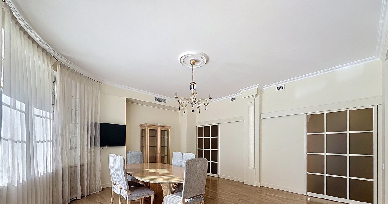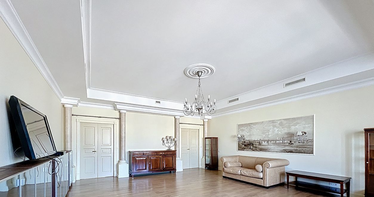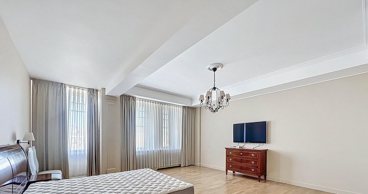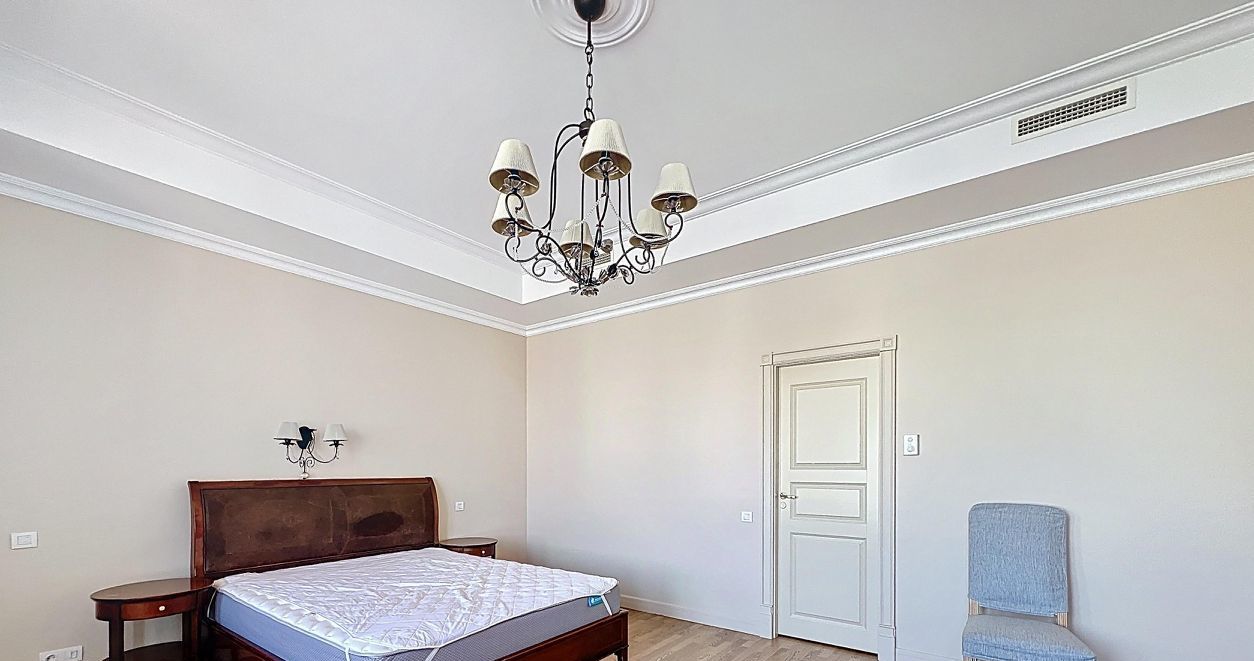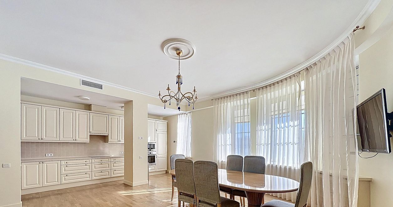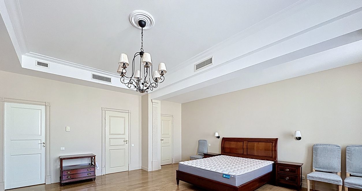 Общая площадь составляет 247 кв. м, квартира расположена на 7 этаже современного дома, высота потолков — 3,4 м, что создаёт ощущение простора и свободы. В квартире выполнен авторский дизайнерский ремонт с использованием высококачественных материалов: реализована премиальная отделка, продуманная система освещения и эргономичные решения для хранения — благодаря этому пространство выглядит эстетично и остаётся функциональным. Квартира полностью укомплектована стильной мебелью и бытовой техникой ведущих брендов и готово к заселению без дополнительных вложений. В числе удобств — современные системы кондиционирования и высокоскоростной интернет. Функциональная планировка включает просторную гостиную, удобную кухню-столовую, три изолированные спальни, четыре гардеробные комнаты для организованного хранения вещей и четыре ванные комнаты, обеспечивающие максимальный комфорт для всех жильцов.