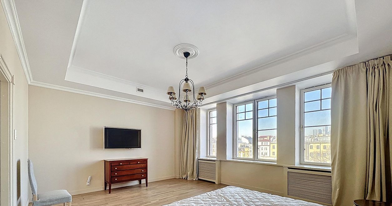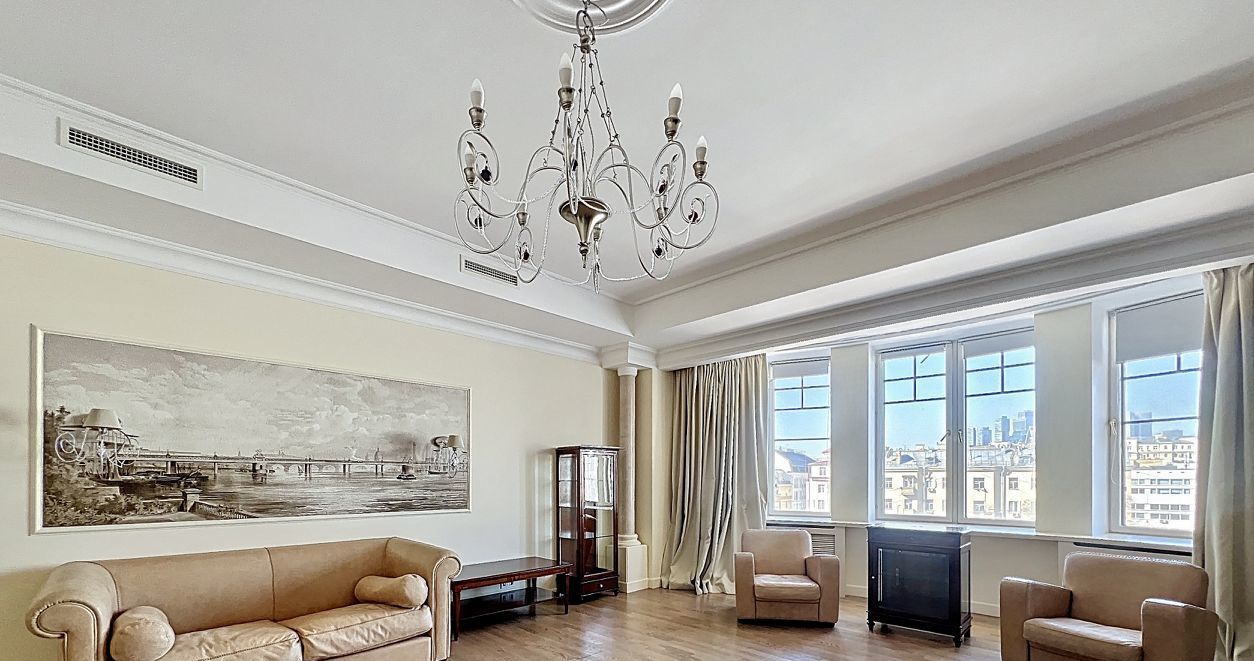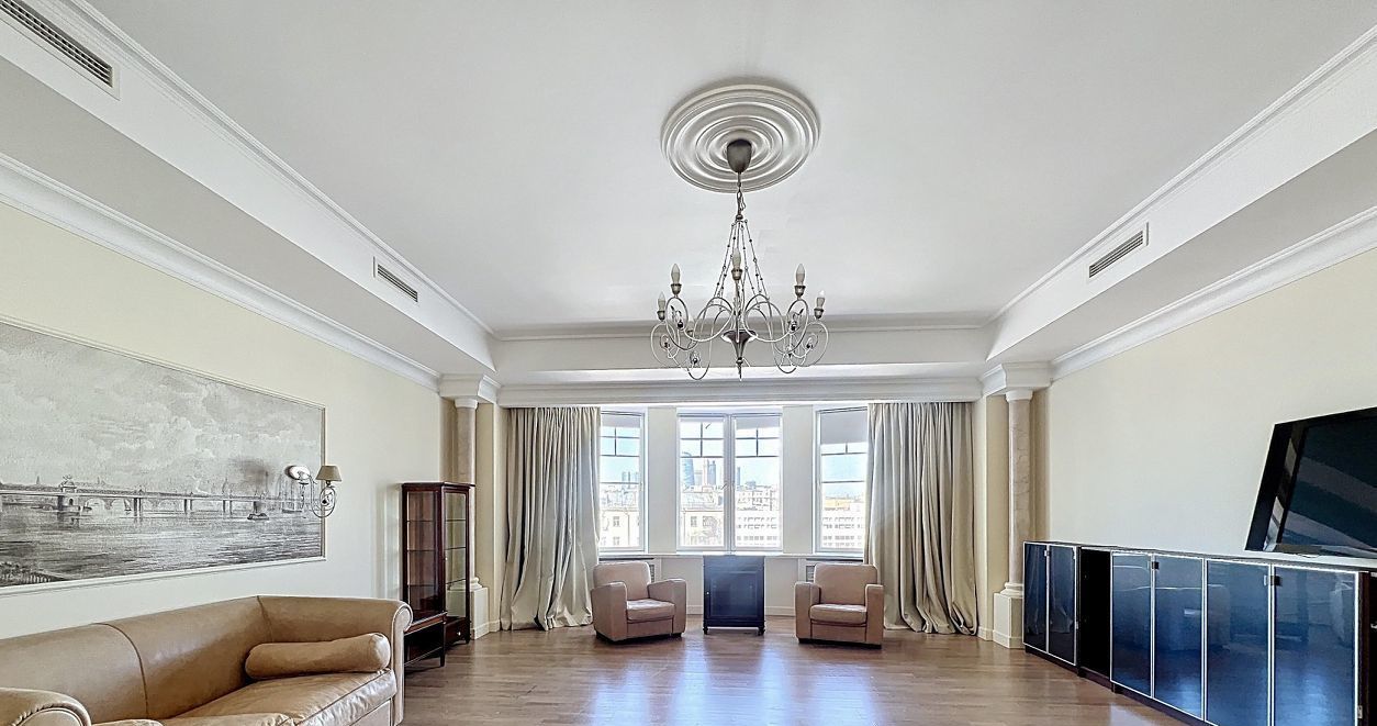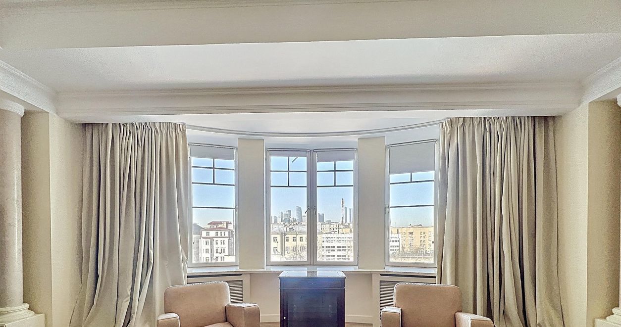 ID 47655. Видовая четырёхкомнатная квартира с дизайнерским ремонтом в престижном районе Москвы, из окон открывается панорамный вид на центр города и обеспечивается высокий уровень естественного освещения.