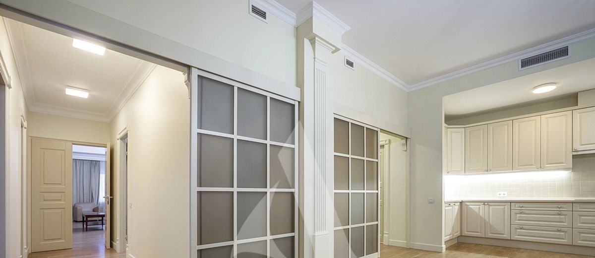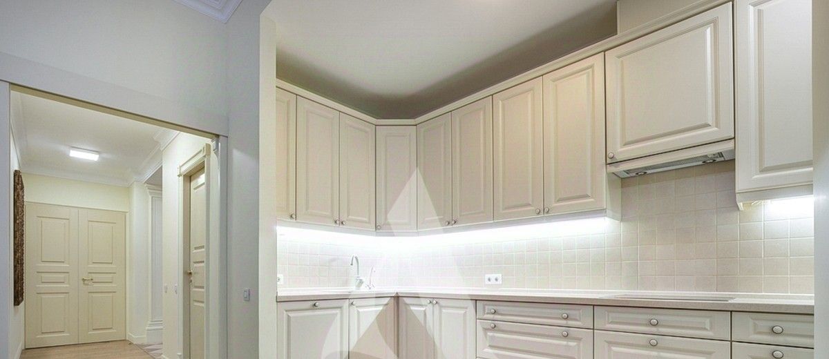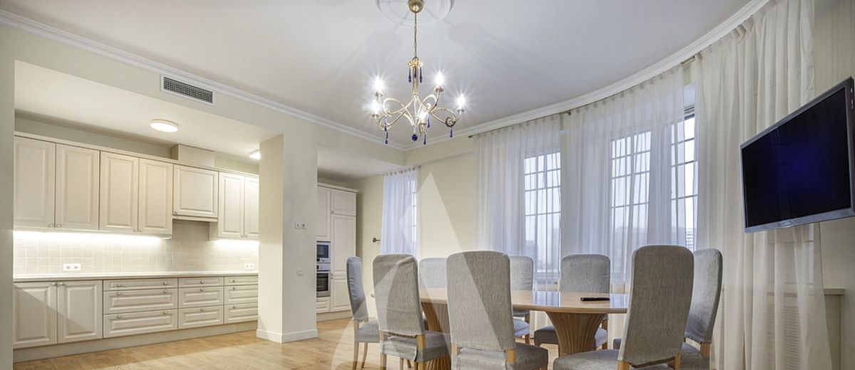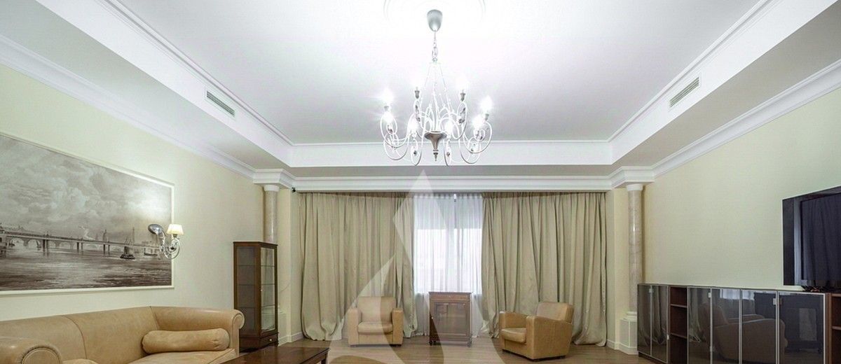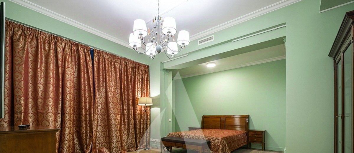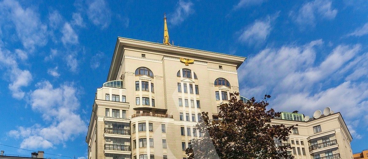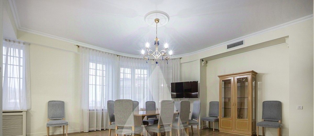 Предлагается четырехкомнатная квартира с дизайнерским ремонтом и итальянской мебелью. Общая площадь квартиры 247 кв. м. Планировка: гостиная, кухня-столовая, три спальни, четыре гардеробные, четыре санузла. Высота потолков 3,4 м. Из окон открывается вид на центр Москвы. Квартира меблирована и оборудована всей необходимой бытовой техникой.