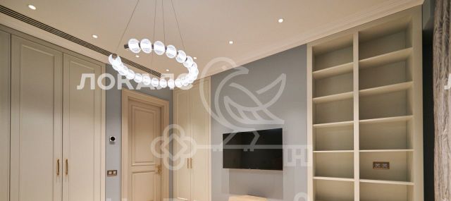 Планировка кухня-столовая-гостиная, мастер-спальня, вторая спальная комната с выходом на балкон, кабинет, три санузла, большое количество мест хранения.