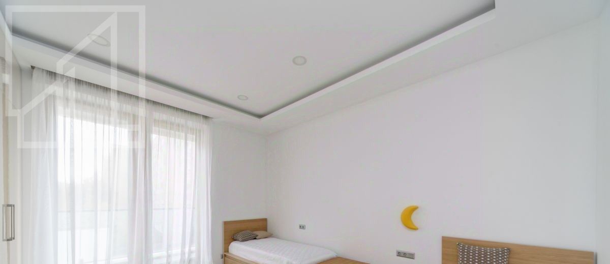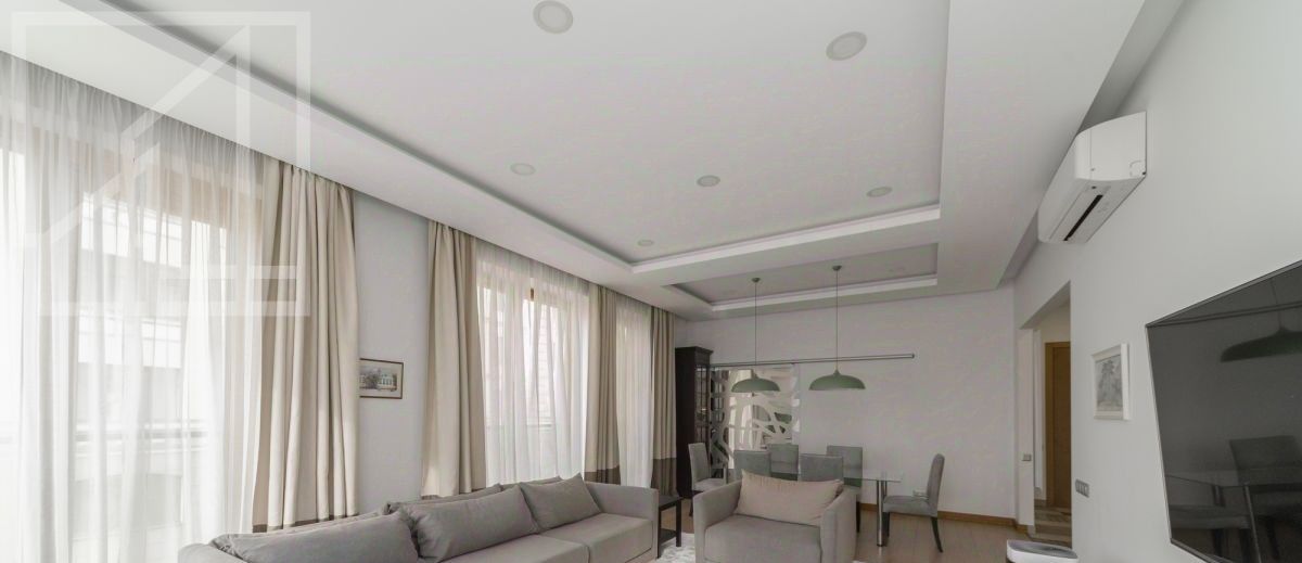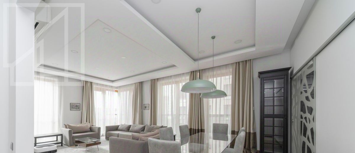 Функциональная планировка: гостиная, кухня, три спальни, два совмещенных и гостевой санузлы, гардеробная комната, две лоджии. Выполнена светлая дизайнерская отделка в современном стиле. На полу выложена доска из натурального дерева. Благодаря панорамному остеклению и потолкам высотой 3,2 метра в квартире много света. Квартира предлагается полностью с мебелью и всей необходимой бытовой техникой. Кондиционирование, спутниковое ТВ, высокоскоростной интернет.