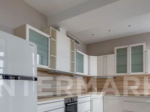 Планировка: кухня-гостиная в едином пространстве (есть раздвижная дверь на кухне), кабинет, главная спальня со своим санузлом с сауной, дополнительная спальня со своим санузлом, 2 гардеробные комнаты,одна из которых при входе, постирочная-санузел. Квартира полностью меблирована и оснащена всей необходимой техникой.