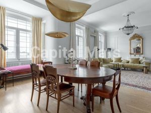 Функциональная круговая планировка квартиры: просторная гостиная, столовая, кухня, спальня, гостевая комната, 1 СУ с окном (2 входа в СУ с разных комнат): джакузи, душевая кабина, 1 большой балкон, 1 застекленная лоджия, холл. Дизайнерская мебель. Встроенная кухня укомплектована всей бытовой техникой Gaggenau. Санузлы оборудованы качественной сантехникой: Villeroy&Boch, Jacuzzi. Дизайнерский проект, высококачественный ремонт с использованием натуральных материалов: красное дерево, мрамор, гранит.