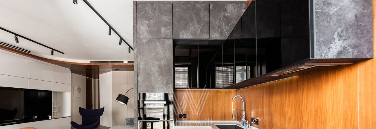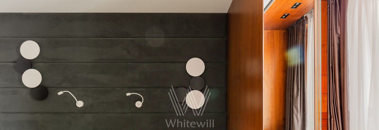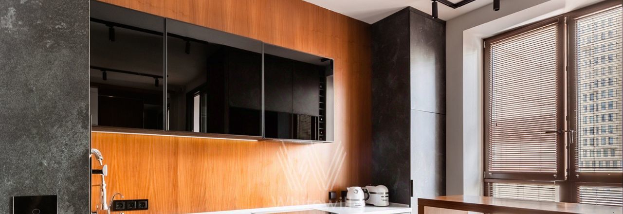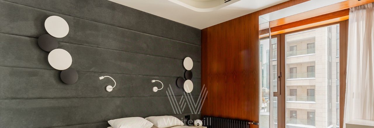 Квартира с 3 спальнями общей площадью 149 м² в комплексе премиум-класса RedSide. Выполнена дизайнерская отделка с использованием натурального шпона. Интерьер оформлен в современном стиле в благородных серых и коричневых тонах. Установлены высокие двери под потолок, биокамин с живым огнём в гостиной. Проведена полноценная звукоизоляция сверху и снизу. Благодаря панорамным окнам пространство наполнено светом и воздухом.