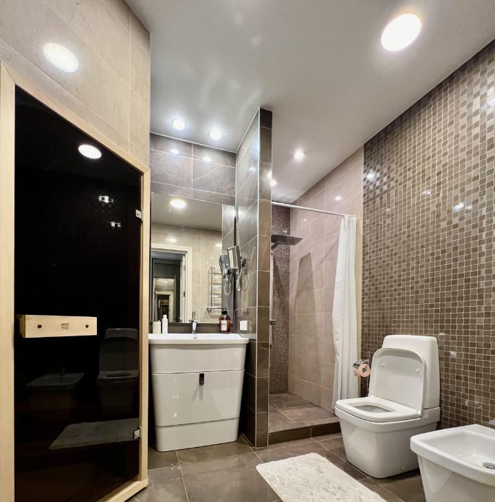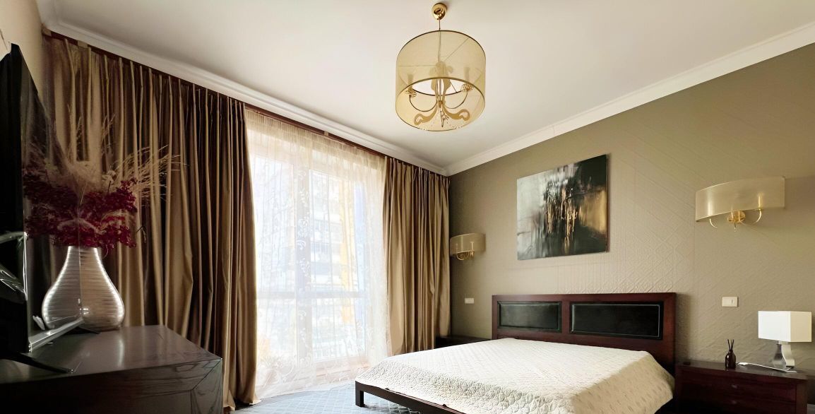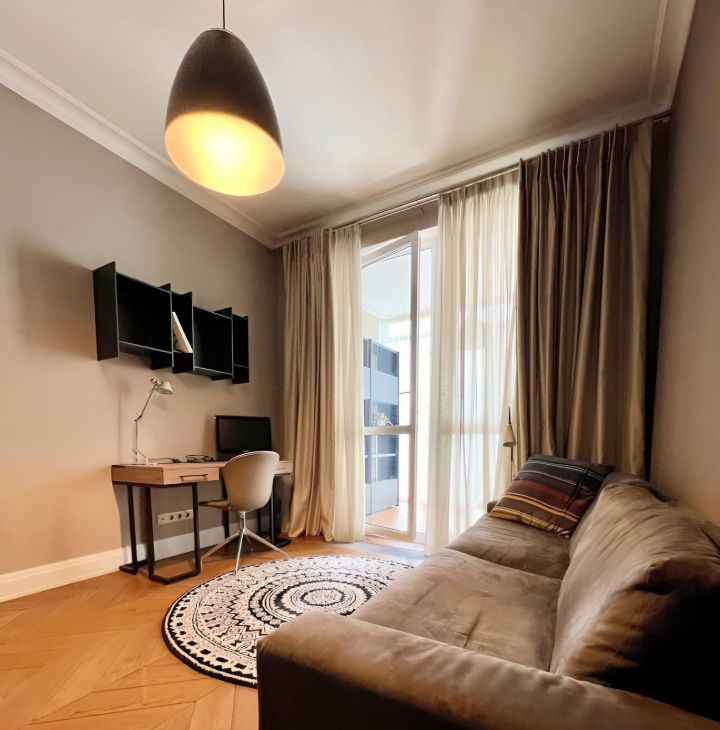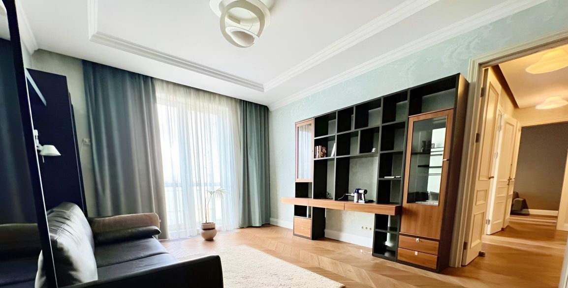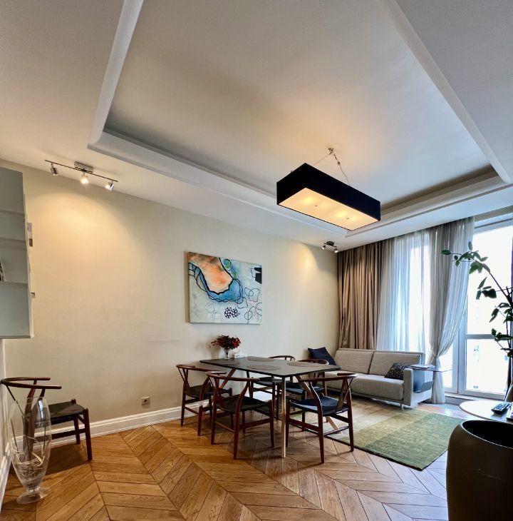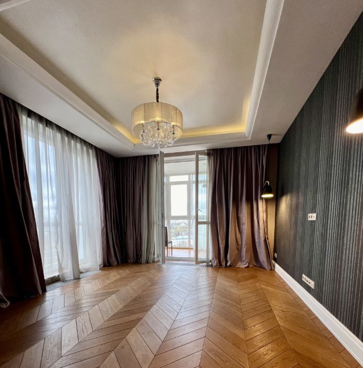 Предлагается в аренду просторная 4-комнатная квартира с дизайнерским ремонтом, с потрясающими видами, благодаря панорамным окнам.
