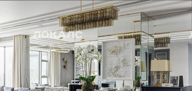 В квартире сделан дизайнерский ремонт очень качественными материалами( натуральное дерево, камень, зеркала). Сантехника и электрика производство Италии, Германии .Все продумано до мелочей. Мебель вся была сделана на заказ под квартиру. Два камина из камня .Обои Де Гурне с ручной росписью. Пол массив, темное дерево во всей квартире, кроме сан.узлов.