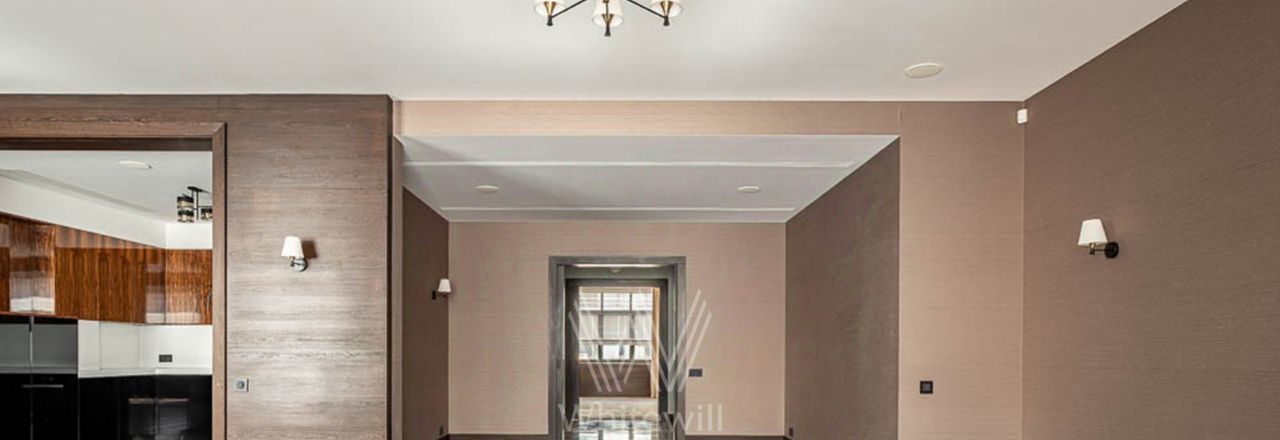 Бонус партнёрам 50%. Квартира с 2-мя спальнями общей площадью 260 м² в комплексе "3-я Тверская-Ямская, 25" в 15 минутах ходьбы от Патриарших прудов. Выполнен дизайнерский ремонт в современном стиле, в отделке использовано натуральное дерево. Квартира без мебели оснащена бытовой техникой — посудомоечная машина, холодильник, кондиционер. В санузлах установлен бойлер, душевая кабина, ванна, уложены теплые полы.